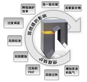 提高爐膛內(nèi)燃燒時(shí),鍋爐可以在減少過量氧氣和降低爐膛出口溫度(FEGT)工況下運(yùn)行,同時(shí)也可以減少局部過熱區(qū)域的面積、防止結(jié)渣。這些業(yè)務(wù)改進(jìn)的結(jié)果是降低氮氧化物排放量,提高效率,降低了局部結(jié)渣和腐蝕。