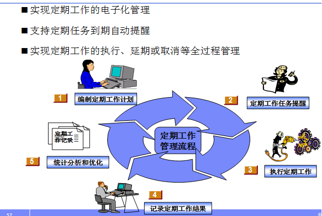 定期工作是電廠運(yùn)行管理基本制度之一,是確保備用設(shè)備、自動(dòng)裝置、保護(hù)裝置和信號(hào)裝置安全可靠,確保電力安全生產(chǎn)的一項(xiàng)重要制度,是保證電廠安全經(jīng)濟(jì)運(yùn)行的一項(xiàng)重要管理措施。各廠根據(jù)本廠有關(guān)管理制度和現(xiàn)場(chǎng)實(shí)際情況,由定期工作編制人(運(yùn)行專工或指定負(fù)責(zé)人)編制本專業(yè)的定期工作任務(wù)及周期。定期工作任務(wù)生成之后,到期自動(dòng)提醒,運(yùn)行值班人員根據(jù)現(xiàn)場(chǎng)實(shí)際情況進(jìn)行相應(yīng)的判斷和工作,并進(jìn)行相關(guān)記錄,實(shí)現(xiàn)定期工作的全過程管理。